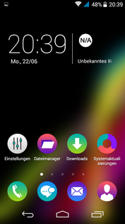 Als Betriebssystem kommt eine leicht angepasste Version von Google Android 4.4.4 KitKat zum Einsatz. Als Firmware war auf unserem Testgerät die Version 8 installiert. Wikos eigene Benutzeroberfläche wirkt bis auf die bunten Icons recht spartanisch, läuft dafür aber sehr flüssig. Auf einen App Drawler verzichtet der Hersteller genauso wie auf Bloatware.