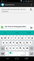 Als virtuelle Tastatur kommt TouchPal X zum Einsatz, genauso wie im Ridge und Ridge Fab. Das Layout wirkt anfangs etwas bunt, und vor allem die überladene Zusatzzeile irritiert anfangs. Doch wenn man sich erst einmal reingefuchst hat, bietet es einige nützliche Features. So lässt sich das eigene Wörterbuch bequem mit der Cloud synchronisieren, und es stehen nicht nur Wischgesten und automatische Wortvorschläge zur Verfügung, sondern mit den Wave-Satzgesten können vorhergesagte Wörter schnell mit einem Wisch eingefügt werden. Auch die Darstellung der Ziffern in Form eines Nummernblocks weiß zu gefallen. Wem das Layout nicht zusagt, kann sich im Play Store einfach ein anderes auswählen oder auf die Standard-Tastatur von Google zurückgreifen.