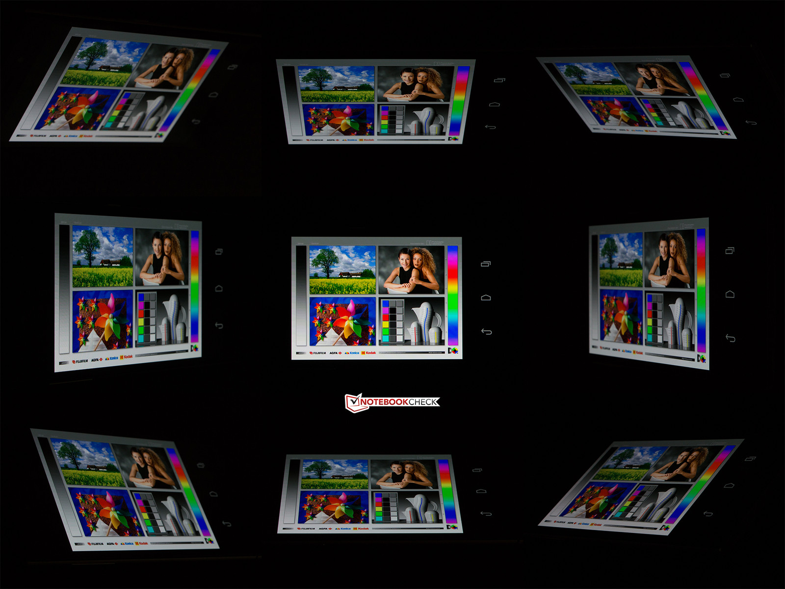 Das AMOLED-Display des Highway Star kann auch bei der Blickwinkelstabilität weitestgehend überzeugen. Die Farben invertieren zu keiner Zeit, und der Helligkeitsverlust bei flachen Betrachtungswinkeln hält sich in Grenzen, jedoch legt sich dann ein leichter Grünschleier über das Display, wie man es auch vom Galaxy S6 kennt.