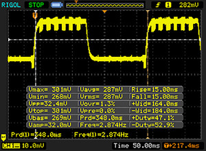 | 30 ms ... steigend ↗ und fallend ↘ kombiniert | ↗ 15 ms steigend | |