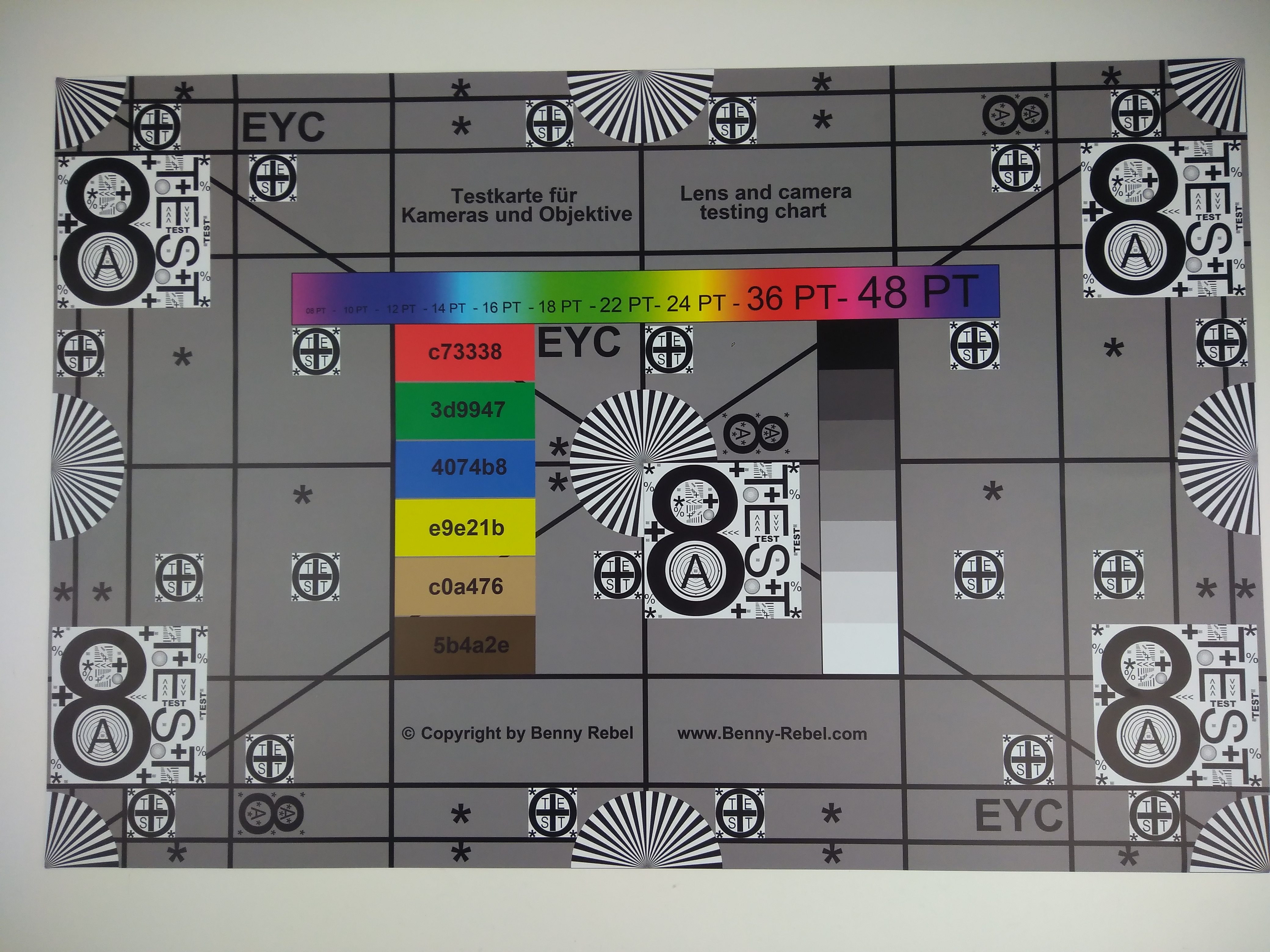 Szene 1Szene 2Szene 3Auch beim Bildtest der Hauptkamera bei kontrollierten Lichtbedingungen im Studio zeigt sich deutliche Unschärfe, Schriftränder fransen spürbar aus.