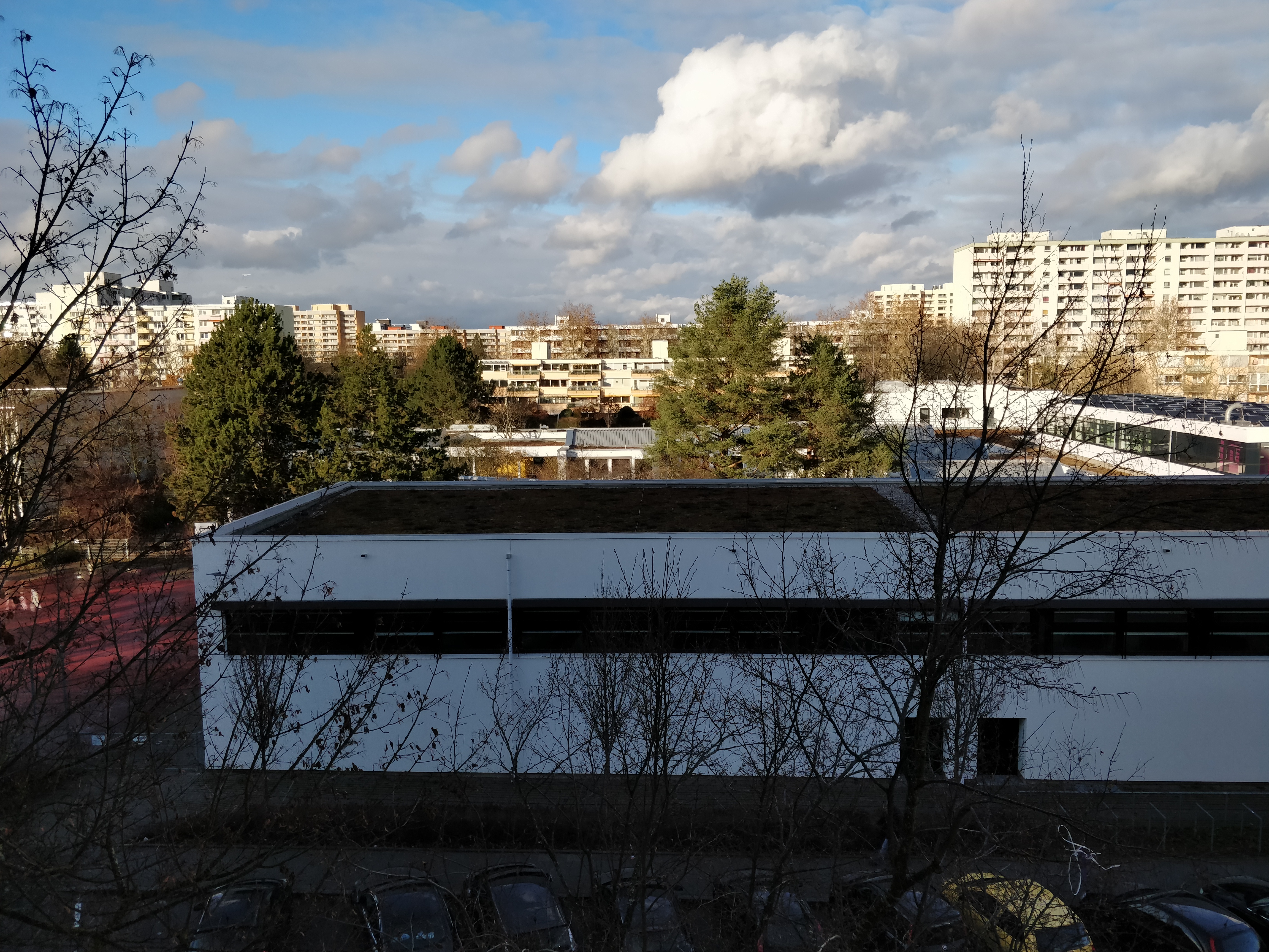 Die zweite Kameralinse an der Rückseite spart sich Wiko beim View 2 Go, wer auf Bokeh-Effekte steht, der wird also enttäuscht. Für sich betrachtet macht die 12-Megapixel-Kamera aber ordentliche Fotos, erst wenn man hineinzoomt, erkennt man, dass Details nicht sehr genau dargestellt werden. Der Himmel im Umgebungsbild wirkt fast wie gemalt, weil die Ränder etwas unsauber dargestellt werden. Die Bildschärfe bei der Low-Light-Aufnahme ist gar nicht so schlecht, mit teureren Smartphones kann das Gerät aber bei Aufhellung und Details nicht mithalten.