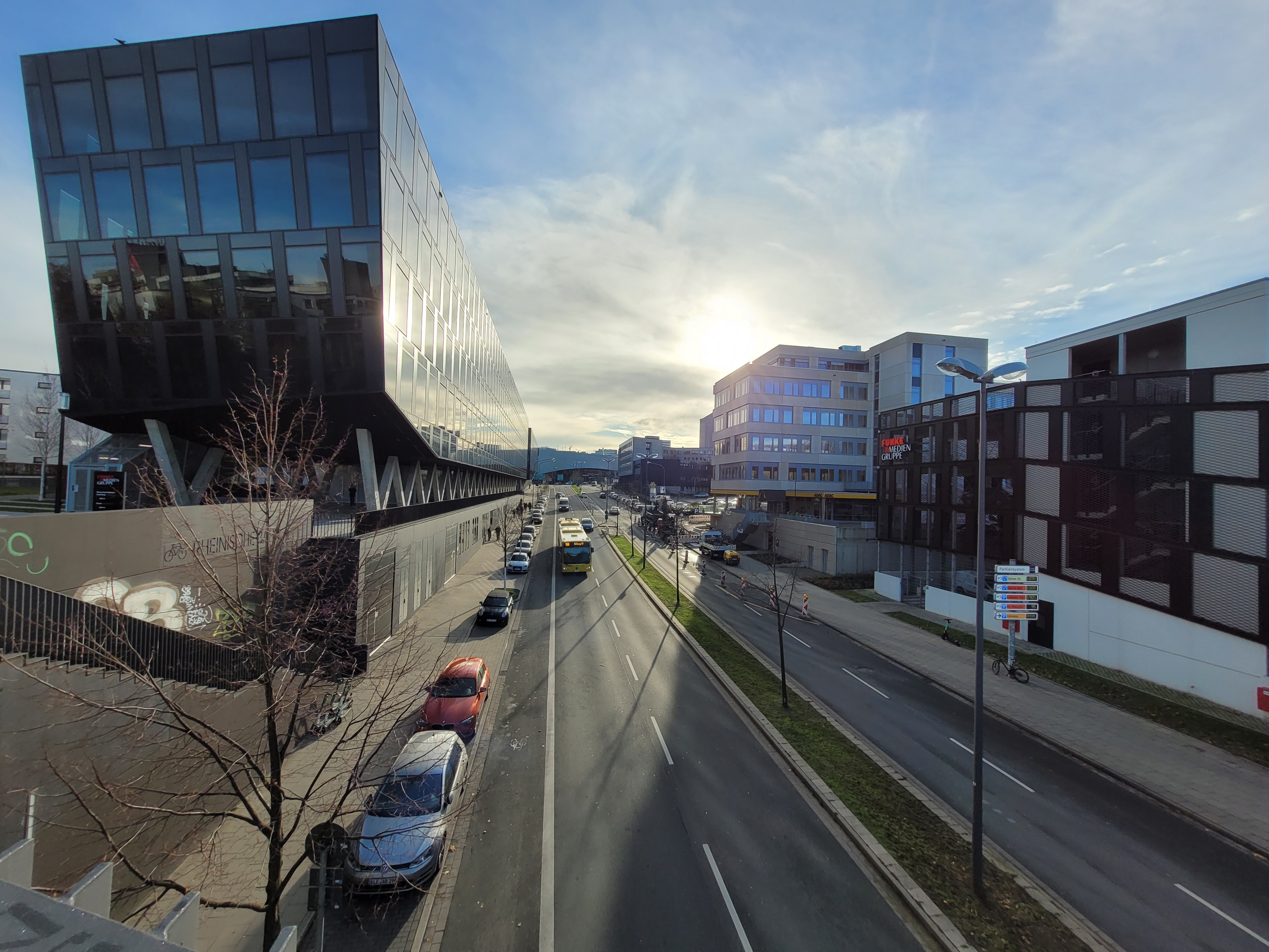 Die 48-MP-Hauptkamera macht ordentliche Aufnahmen, ist mit Gegenlicht jedoch schnell überfordert und neigt trotz automatischem HDR dann zu ausgebrannten Bildbereichen. Der Ultraweitwinkel wölbt das Bild zwar recht stark und fängt aufgrund der geringen Auflösung nur wenige Details in der Tiefe ein, macht seinen Job aber ansonsten gut. Die beiden übrigen Linsen bieten nur wenig Mehrwert.