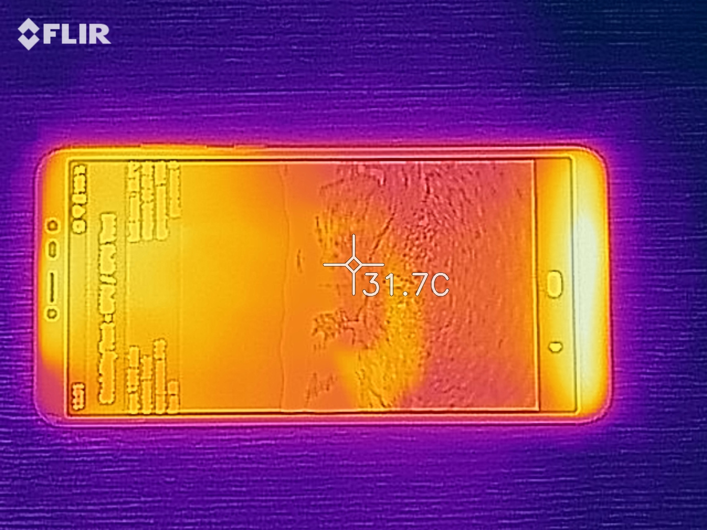 (+) Auf der Unterseite messen wir eine maximalen Wert von 33 °C (im Vergleich zum Durchschnitt von 34 °C).