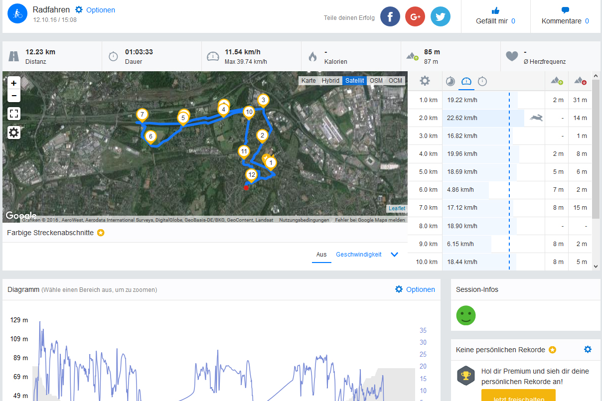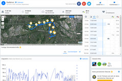 Doch wirken sich diese fabelhaften Werte im Praxiseinsatz aus? Um dies herauszufinden, haben wir das Smartphone mit auf eine Radtour genommen, die wir parallel mit dem GPS-Fahrradcomputer Garmin Edge 500 aufgezeichnet haben. Dabei hinterließ das Spark+ einen brauchbaren Eindruck, auch wenn an manchen schwierigen Stellen – beispielsweise der Unterführung im Bereich der Bahngleise oder der Flussüberquerung – Abweichungen von der tatsächlichen Fahrtstrecke zu erkennen sind. Grobe Ausrutscher gab es jedoch nicht, sodass dem Spark+ eine für Navigationszwecke allemal ausreichende GPS-Performance attestiert werden kann.