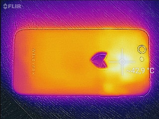 (±) Auf der Unterseite messen wir eine maximalen Wert von 42.2 °C (im Vergleich zum Durchschnitt von 34 °C).