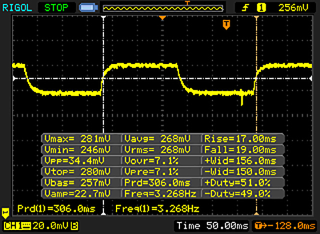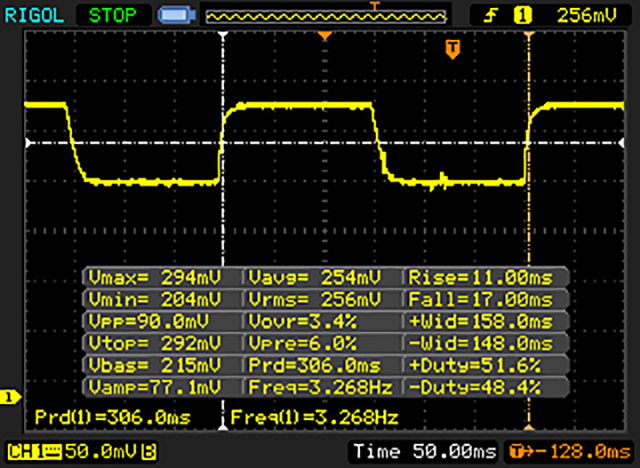 | 36 ms ... steigend ↗ und fallend ↘ kombiniert | ↗ 17 ms steigend | |