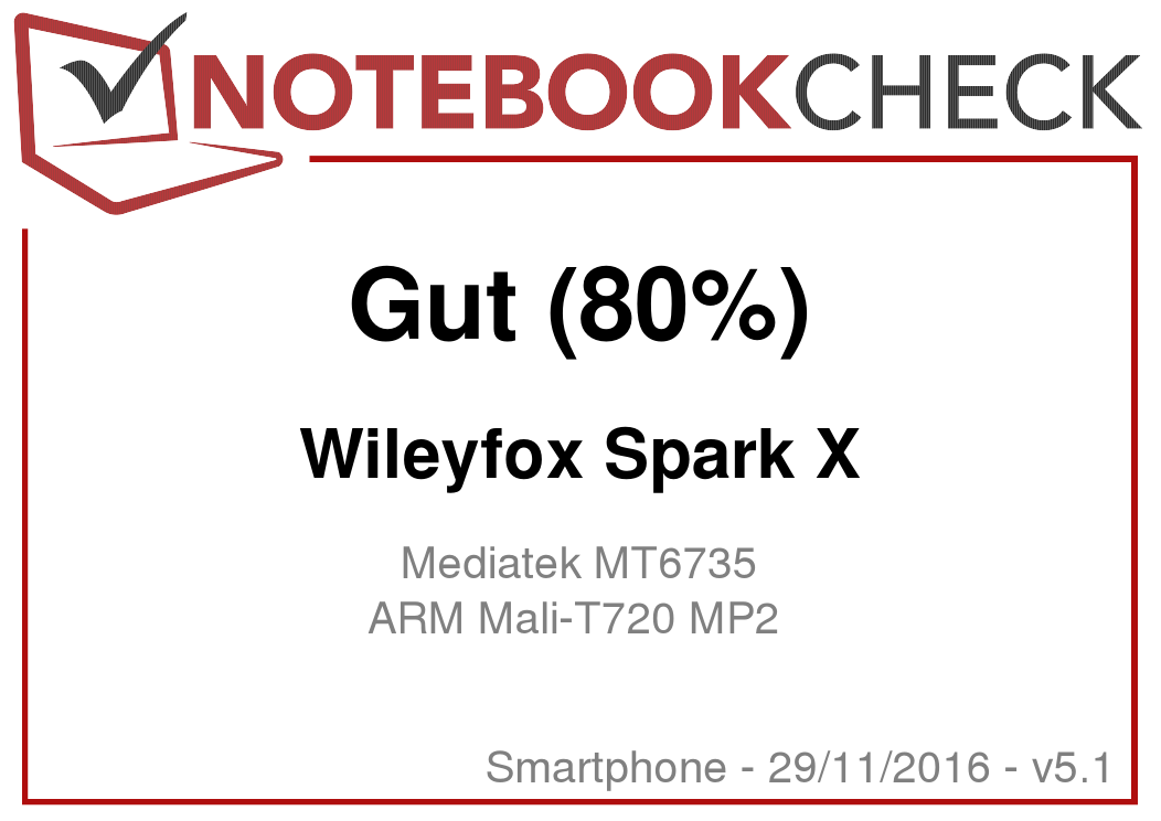 Im Wileyfox Spark X kommt der mit 1,5 GHz getaktete Mediatek MT6735 64-Bit-SoC mit integrierter Mali-T720 MP2 Grafikkarte zum Einsatz. Beiden stehen 2 Gigabyte Arbeitsspeicher zur Verfügung. Die Mittelklasse-Hardware wird auch in den Konkurrenzgeräten verwendet, dennoch kann sich unser Testsample teils absetzen. Im PCMark-Benchmark-Test muss es sich aber den Mitbewerbern gesamt unterordnen. Einzig das Blackview R7 nutzt den stärkeren Mediatek Helio P10 MT6755 und liegt in allen Benchmarks vorne.
