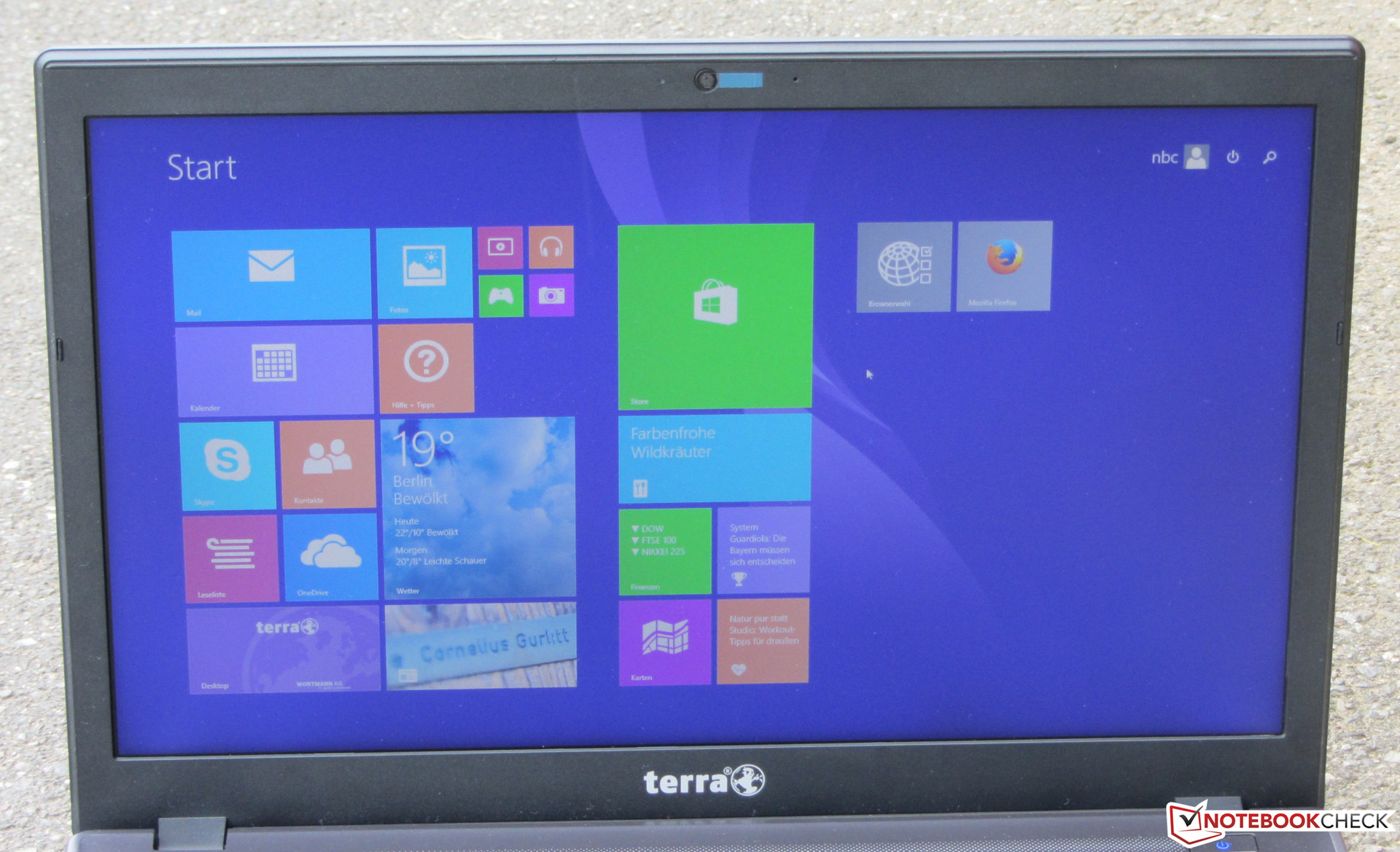 Das Terra Mobile ist mit einem matten 15,6-Zoll-Bildschirm ausgestattet, der über eine native Auflösung von 1.920 x 1.080 Bildpunkten verfügt. Mit einem Helligkeitswert von 353,8 cd/m² kann es sich einen Platz im vorderen Tabellendrittel sichern. Kontrast (300:1) und Schwarzwert (1,24 cd/m²) fallen hingegen äußerst mau aus. Solche Werte sind einem Käufer eines 700-Euro-Notebooks heutzutage nicht mehr zuzumuten. Ein deutlich besseres Display hat beispielsweise das Asus N56JR zu bieten. Die aktuell günstigste Variante - das N56JR-S4104H (Core i5-4200H, GeForce GTX 760M) - kostet aber auch 200 Euro mehr als das Terra Mobile.