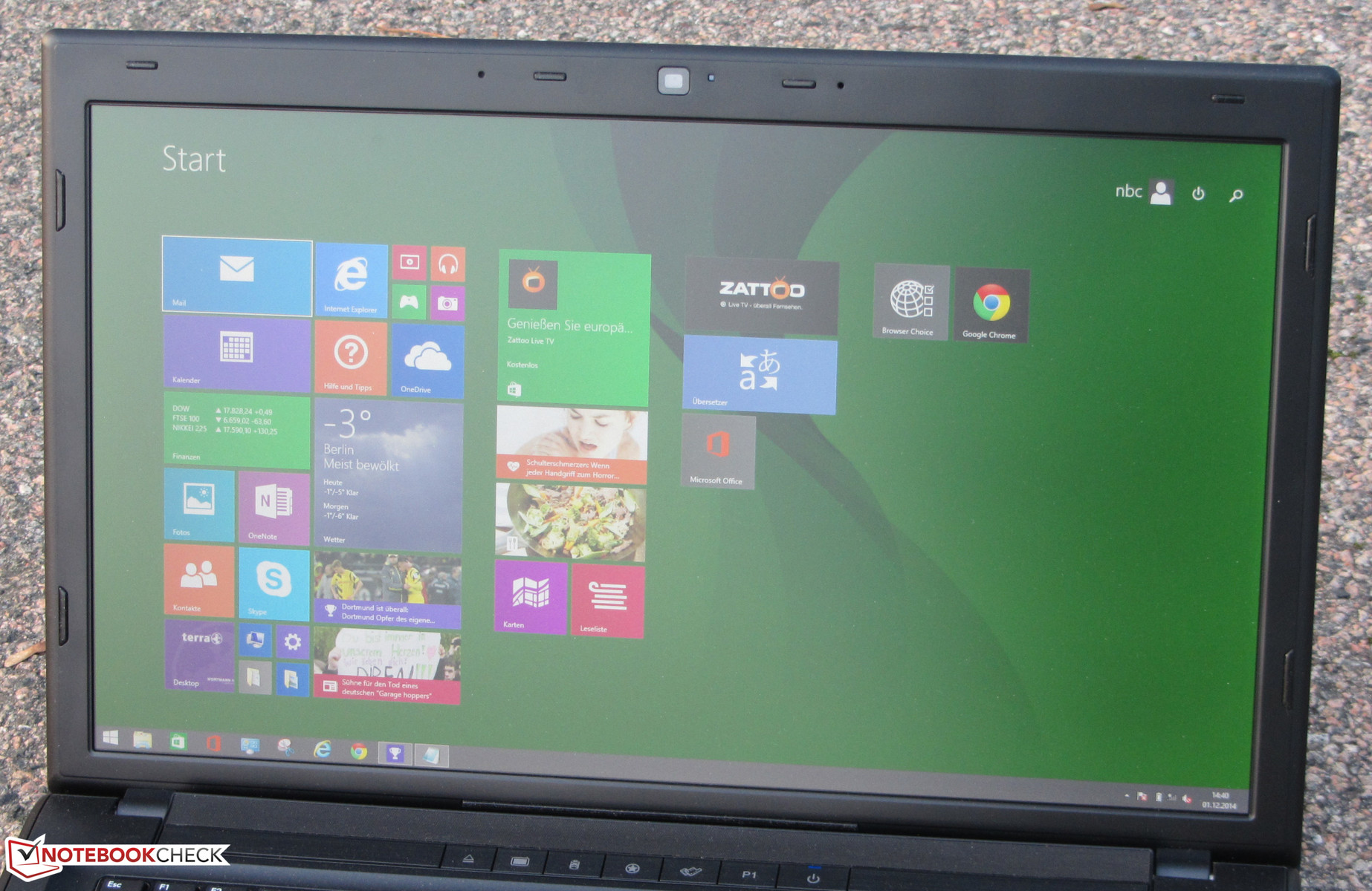 Ein IPS-Panel steckt nicht in dem Notebook. Es handelt sich um ein recht gutes TN-Panel, welches größere Blickwinkel zu bieten hat als die entsprechenden Panels günstiger Notebooks. Mit einem IPS-Modell kann es aber nicht mithalten. Das Terra Mobile kann im Freien eingesetzt werden. Die matte Oberfläche in Kombination mit ausreichender Helligkeit und einem großen Kontrast machen es möglich.