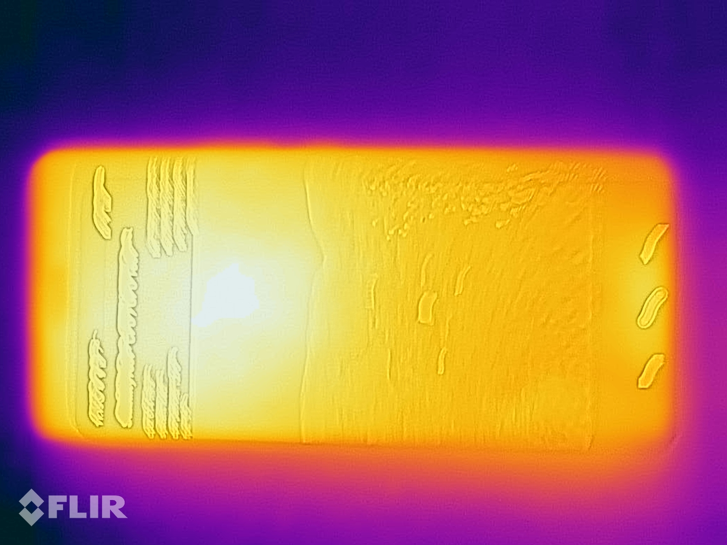 (+) Auf der Unterseite messen wir eine maximalen Wert von 32.6 °C (im Vergleich zum Durchschnitt von 34 °C).