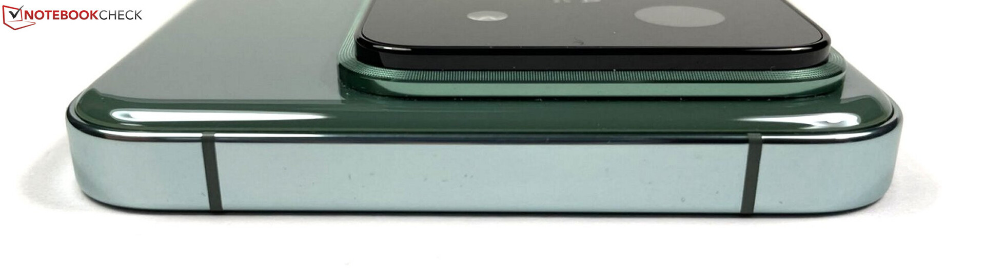 In der Glasversion werden Display und Rückseite jeweils von Corning Gorilla Glas Victus geschützt und fühlen sich sehr hochwertig an. Im Test erweisen sich beide Oberflächen allerdings auch als Fingerabdruckmagneten. Abdrücke lassen sich auf dem Aluminiumrahmen mit seinem Hochglanzfinish ebenso wenig vermeiden. Die Abdeckung des SIM-Slots besteht auch aus Aluminium und schließt sauber mit dem Rahmen ab. Insgesamt ist die Verarbeitung sehr gut und die Spaltmaße sind schmal und gleichmäßig.