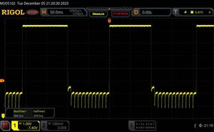 Bedingt durch die verbaute OLED-Technologie nutzt Xiaomi zur Steuerung der Bildschirmhelligkeit die Pulsweitenmodulation samt Bildschirmflackern. Der Amplitudenverlauf ist bei unserer Messung mit dem Oszilloskop über das gesamte Helligkeitsspektrum sehr gleichmäßig und mit 120 Hz konstant. Der Hersteller selbst spricht jedoch von einer sehr hohen Frequenz (1.920 Hz), was gerade für empfindliche Menschen sehr viel angenehmer wäre. Hierzu untersuchen wir zusätzlich das Xiaomi 14 Pro mit einen Flickermeter, welches visuell wahrnehmbare Schwankungen in der Leuchtdichte erkennt. Damit können wir anhand unserer Messung (1.933 Hz) auch diese Angaben bestätigen.