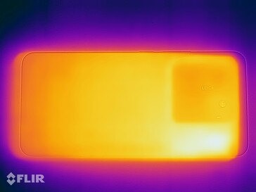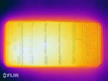 (±) Auf der Unterseite messen wir eine maximalen Wert von 44.2 °C (im Vergleich zum Durchschnitt von 34 °C).