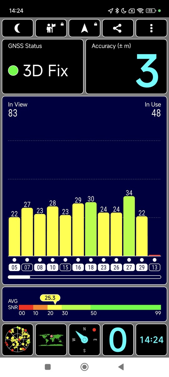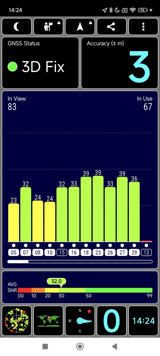 Für die Positionsbestimmung nutzt das Xiaomi 14 Ultra alle Satellitennavigationssysteme, ausgenommen das japanische QZSS. Es nutzt dabei die gängigsten Bänder und kann auch in Innenräumen schnell eine präzise Positionierung vornehmen.