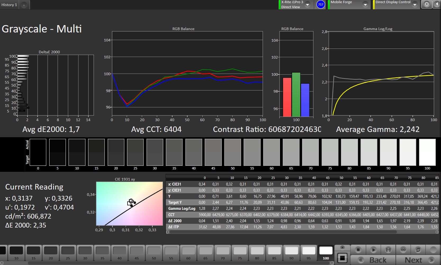 ΔE Greyscale Calman: 1.7 | ∀{0.09-98 Ø5}