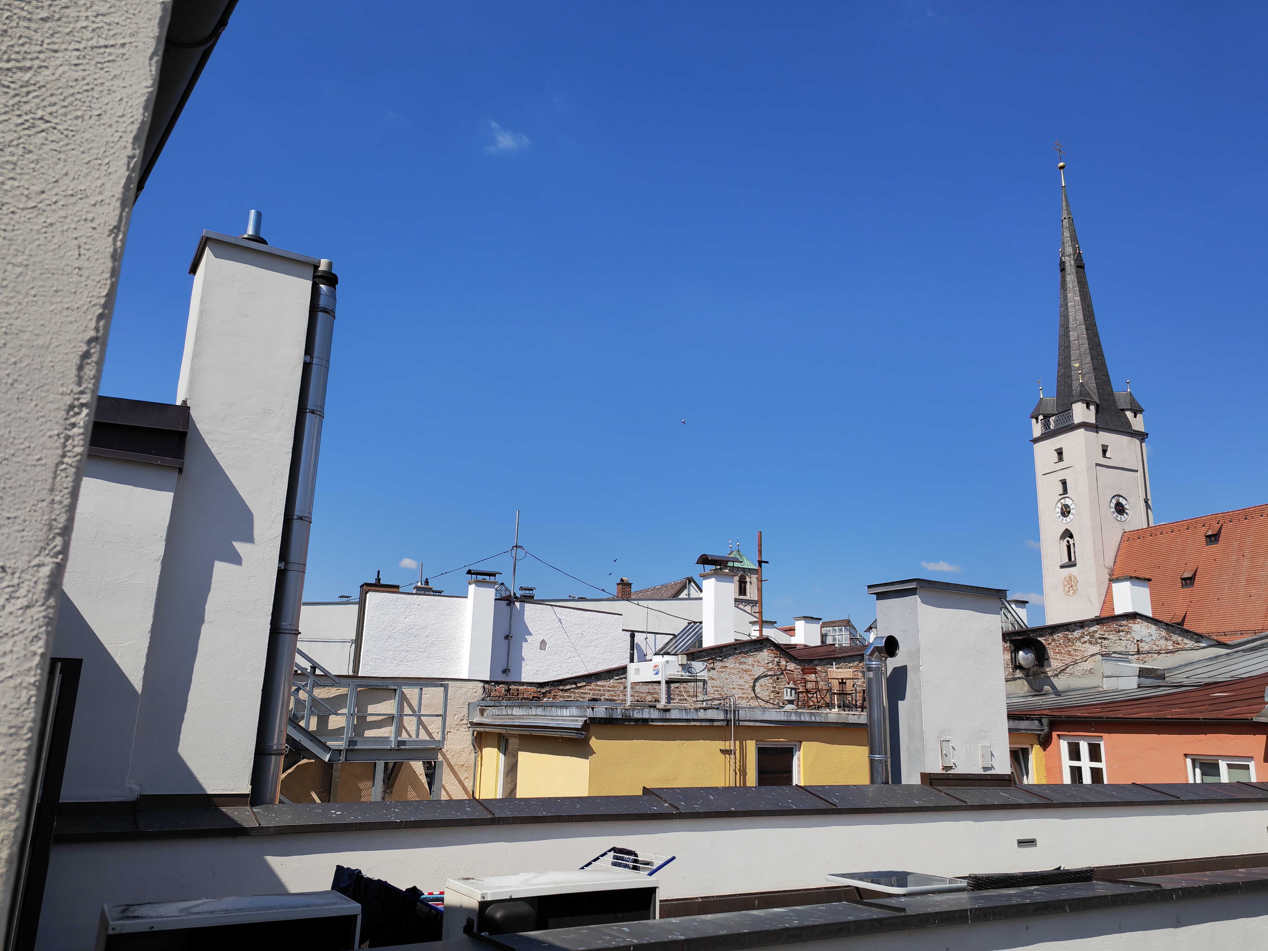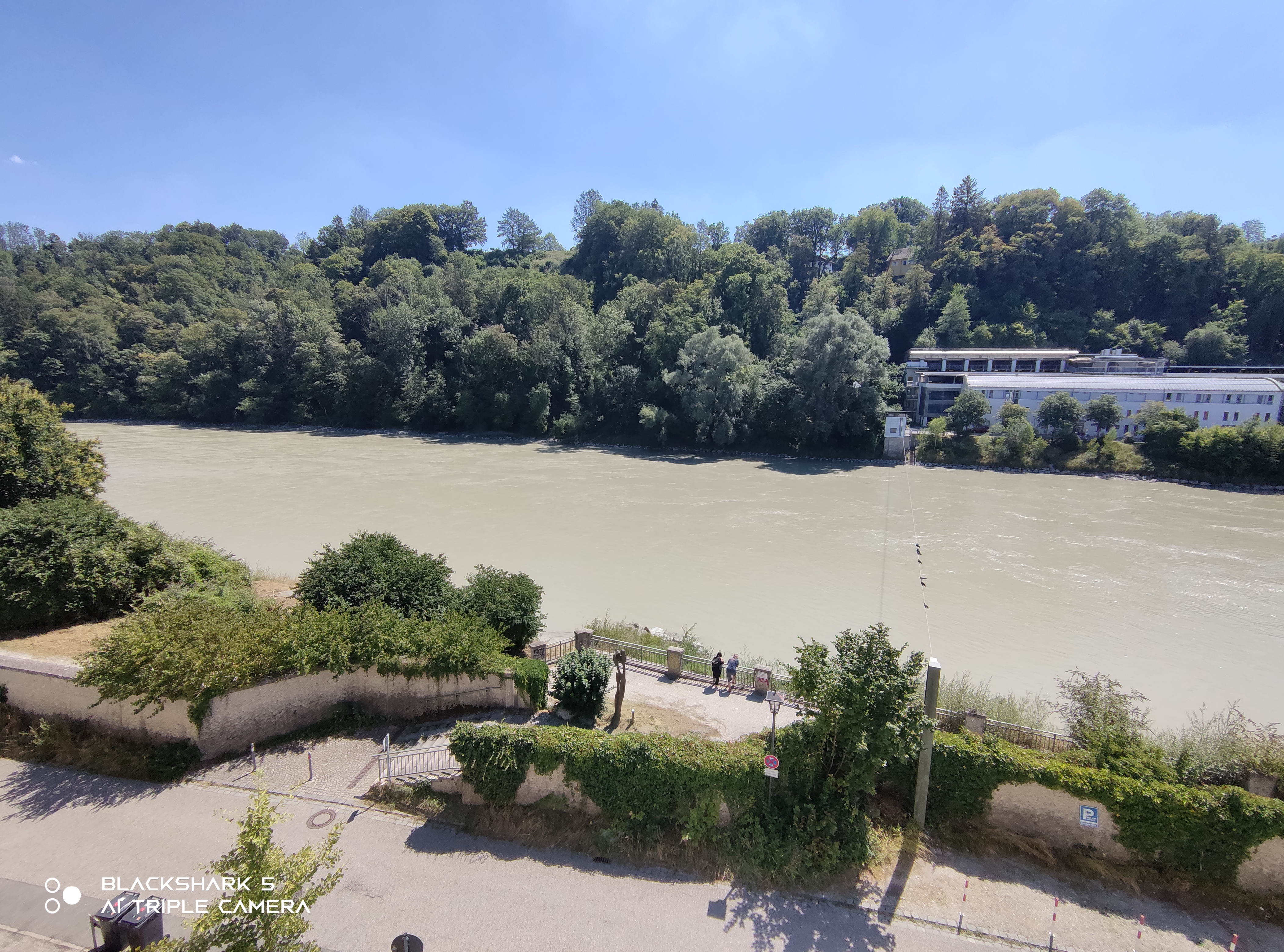 Die Weitwinkelkamera lässt sich nur direkt anwählen, einen Hybridzoom gibt es nicht. Gut gefällt uns die Korrektur der Verzerrung, insgesamt besitzt das Bild aber einen deutlichen Blaustich und zeigt bei Vergrößerungen kaum mehr Details. Zusätzlich gibt es noch eine niedrig auflösende Makrokamera für extreme Nahaufnahmen.