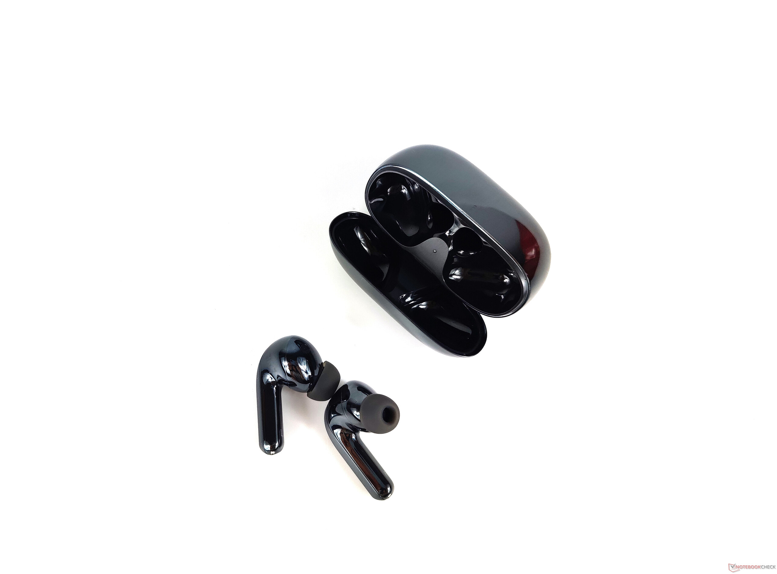 Die FlipBuds Pro sind eine sehr gute Weiterentwicklung der Mi Air 2 Pro. Xiaomi geht mit der aktuellen TWS-Generation weg von der recht kantigen, aber eigenständigen Designsprache zu einer abgerundeten Formgebung – sowohl beim Case als auch bei den In-Ears selbst. Leider gibt es die Flipbuds Pro nur in Schwarz und mit einer glänzenden, stark spiegelnden Oberfläche, die Fingerabdrücke über das gesamte Gehäuse betonen.