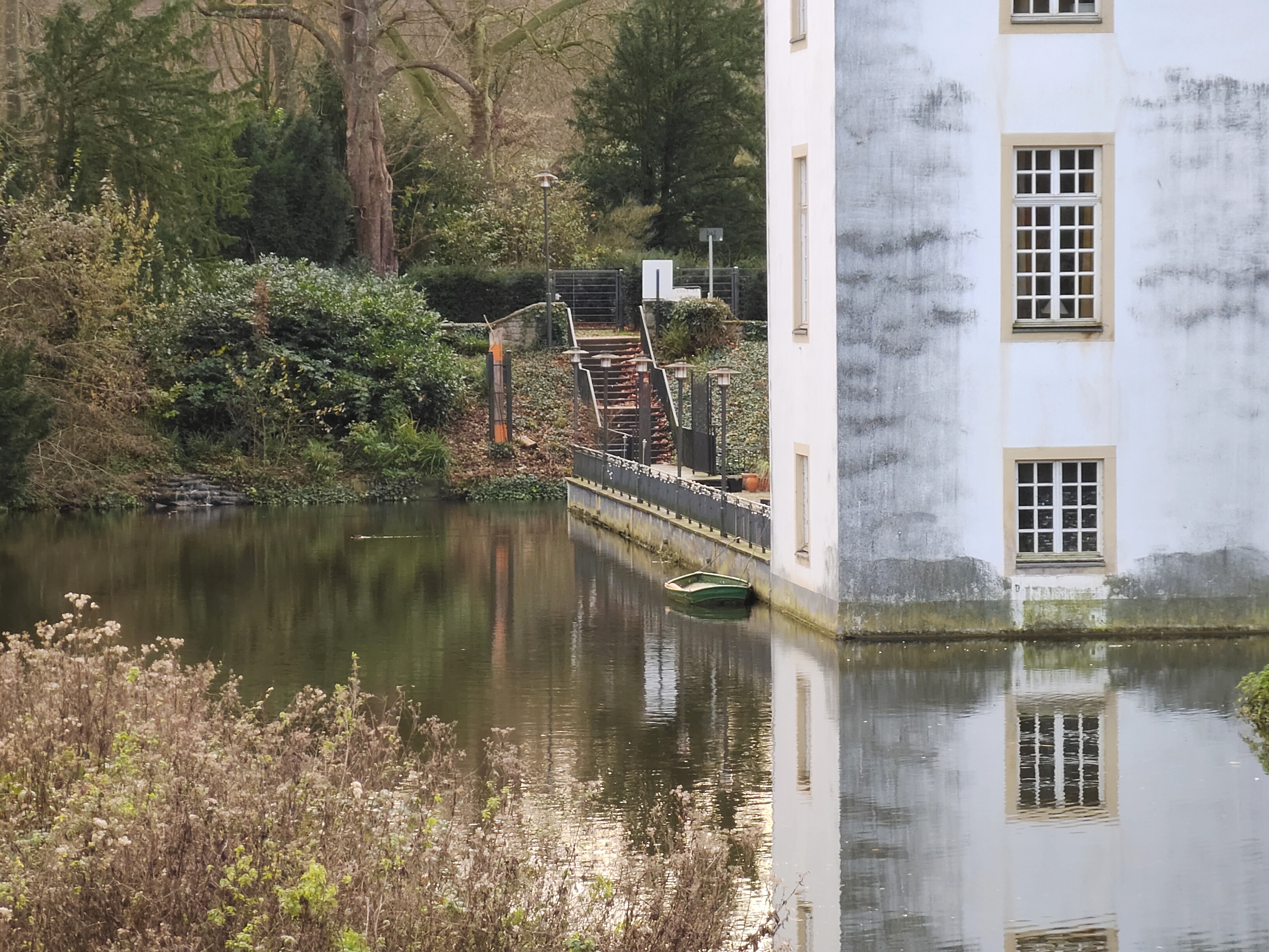 Bei Tageslicht macht das Mi 10T Lite gute Aufnahmen, die mit ausgewogener Farbdarstellung und hoher Dynamik überzeugen. Allerdings hat es die Kamera Mühe, feine Bilddetails in solchen Bildpassagen herauszuarbeiten, in denen die Lichtverhältnisse nicht mehr ganz optimal sind. Gut zu erkennen ist das zum Beispiel in Szene 2, der Aufnahme des Wasserschlosses. Die Uferböschung und die Hecke rechts bei der Zufahrt bilden eine homogene und verschwommene Fläche, während auf den Aufnahmen der Vergleichsgeräte Äste und Blätter noch deutlich zu sehen sind. Die Weitwinkelaufnahmen sind okay, geraten allerdings eine Spur zu farbintensiv und werden an den Rändern unscharf.