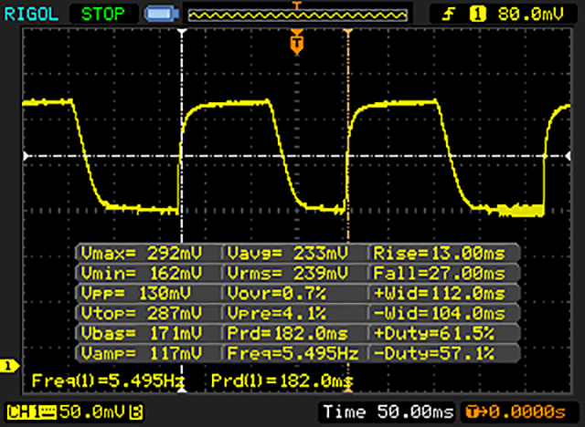 Das Display flackert mit 2273 Hz (im schlimmsten Fall, eventuell durch Pulsweitenmodulation PWM) bei einer eingestellten Helligkeit von 17 % und darunter. Darüber sollte es zu keinem Flackern kommen. Die Frequenz von 2273 Hz ist sehr hoch und sollte daher auch bei empfindlichen Personen zu keinen Problemen führen. Im Vergleich: 53 % aller getesteten Geräte nutzten kein PWM um die Helligkeit zu reduzieren. Wenn PWM eingesetzt wurde, dann bei einer Frequenz von durchschnittlich 8083 (Minimum 5, Maximum 343500) Hz. | |||