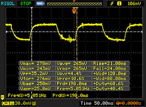 | 40 ms ... steigend ↗ und fallend ↘ kombiniert | ↗ 13 ms steigend | |