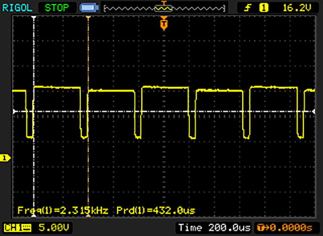 Bei einer sehr niedrigen Helligkeit ab 20 Prozent konnten wir ein Bildschirmflackern bei einer recht hohen Frequenz von 2.315 Hz messen.