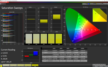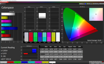 Die Displayanalyse mit einem Fotospektrometer und der CalMAN-Software zeigt gemessen an der Konkurrenz recht große Abweichungen in der Farb- (4,8) und Graustufendarstellung (5,3). Außerdem fällt die Farbtemperatur des Displays von 7.473 Kelvin etwas zu kühl aus - in der Praxis ergibt das einen leichten Blaustich.