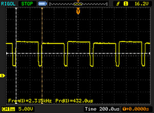 Das Display flackert mit 2315 Hz (im schlimmsten Fall, eventuell durch Pulsweitenmodulation PWM) bei einer eingestellten Helligkeit von 20 % und darunter. Darüber sollte es zu keinem Flackern kommen. Die Frequenz von 2315 Hz ist sehr hoch und sollte daher auch bei empfindlichen Personen zu keinen Problemen führen. Im Vergleich: 53 % aller getesteten Geräte nutzten kein PWM um die Helligkeit zu reduzieren. Wenn PWM eingesetzt wurde, dann bei einer Frequenz von durchschnittlich 8105 (Minimum 5, Maximum 343500) Hz. | |||