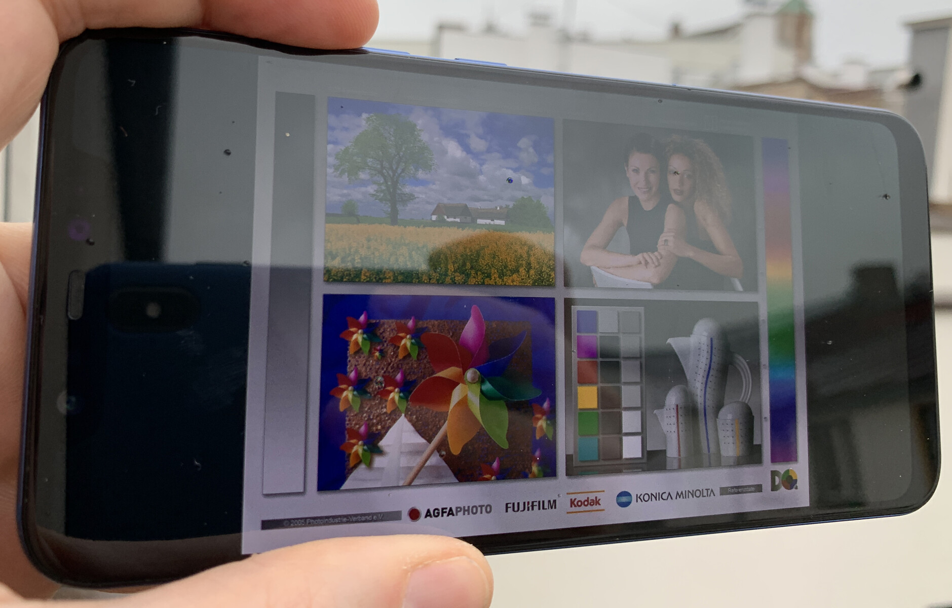 Die Blickwinkel sind AMOLED-typisch sehr gut, es sind allenfalls minimale Farbverschiebungen sichtbar.