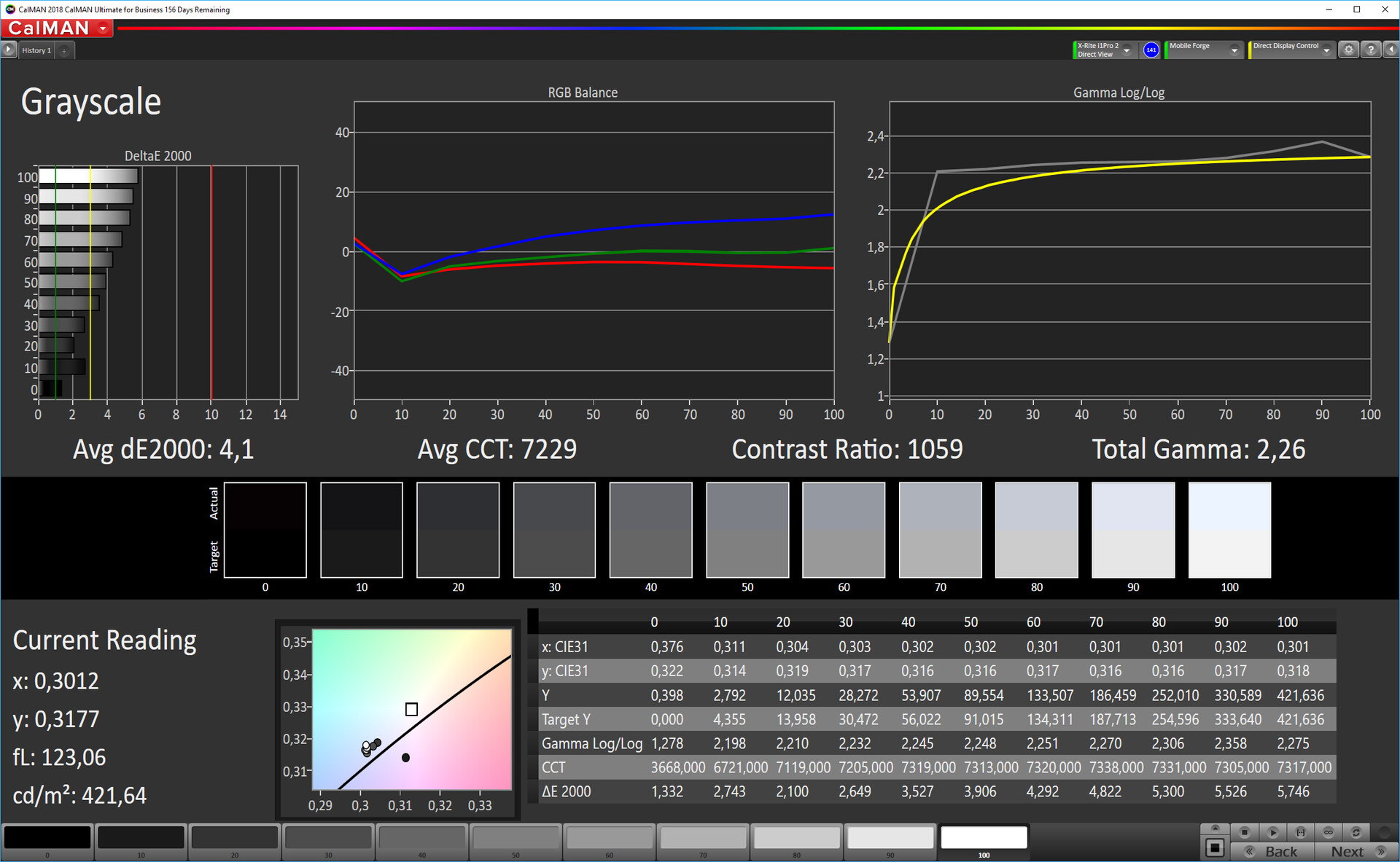 ΔE Greyscale Calman: 1.6 | ∀{0.09-98 Ø5}