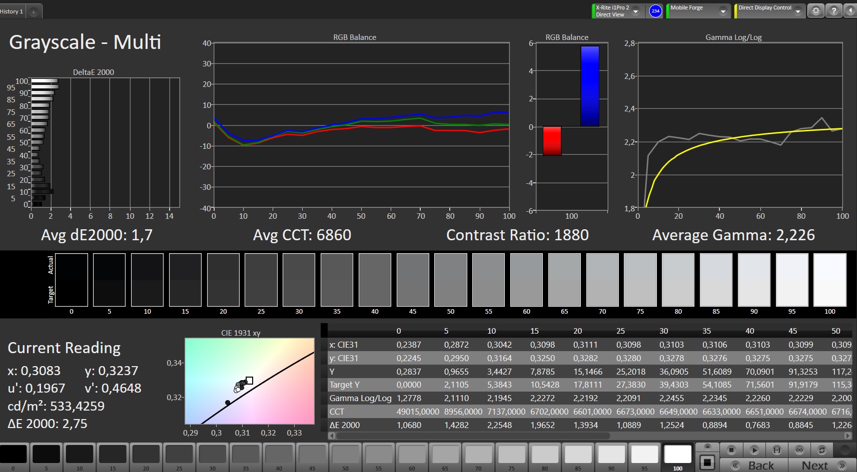 ΔE Greyscale Calman: 1.7 | ∀{0.09-98 Ø5}