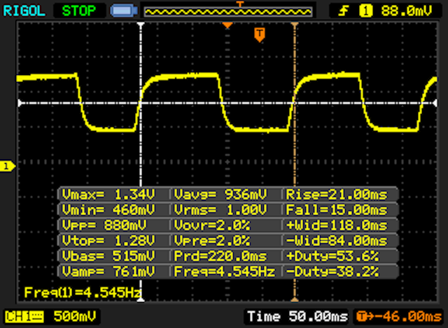 | 36 ms ... steigend ↗ und fallend ↘ kombiniert | ↗ 21 ms steigend | |
