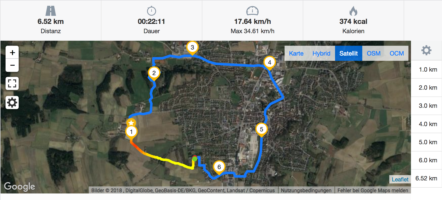 Etwas eigenwillige Daten servierte uns das GPS speziell in der App "GPS Test". Im Innenraum konnte er zwar relativ zügig eine Position bestimmen, diese wurde aber mit hoher Ungenauigkeit von über 100 Metern angegeben. Im zweiten Test sah es dann doch wieder etwas realistischer aus. Das verwundert ein wenig, denn im Test auf unserem Fahrradparcours zeigte das Mi Mix 2 ein gute Leistung. Die Abweichungen gegenüber unserem Referenzgerät Garmin Edge 500 halten sich in Grenzen. Bei der Distanz gibt es eine Abweichung von 50 Metern, bei einer Gesamtstrecke von 6,5 km. Das sind im Grunde hervorragende Werte. Die Unterschiede lassen sich meist durch die geringere Frequenz des Positionsabrufs, die wir bei fast allen Smartphones beobachten, erklären. Erkennbar ist dies in unseren Streckenbildern anhand der "kantigeren" Darstellung des Streckenverlaufs.