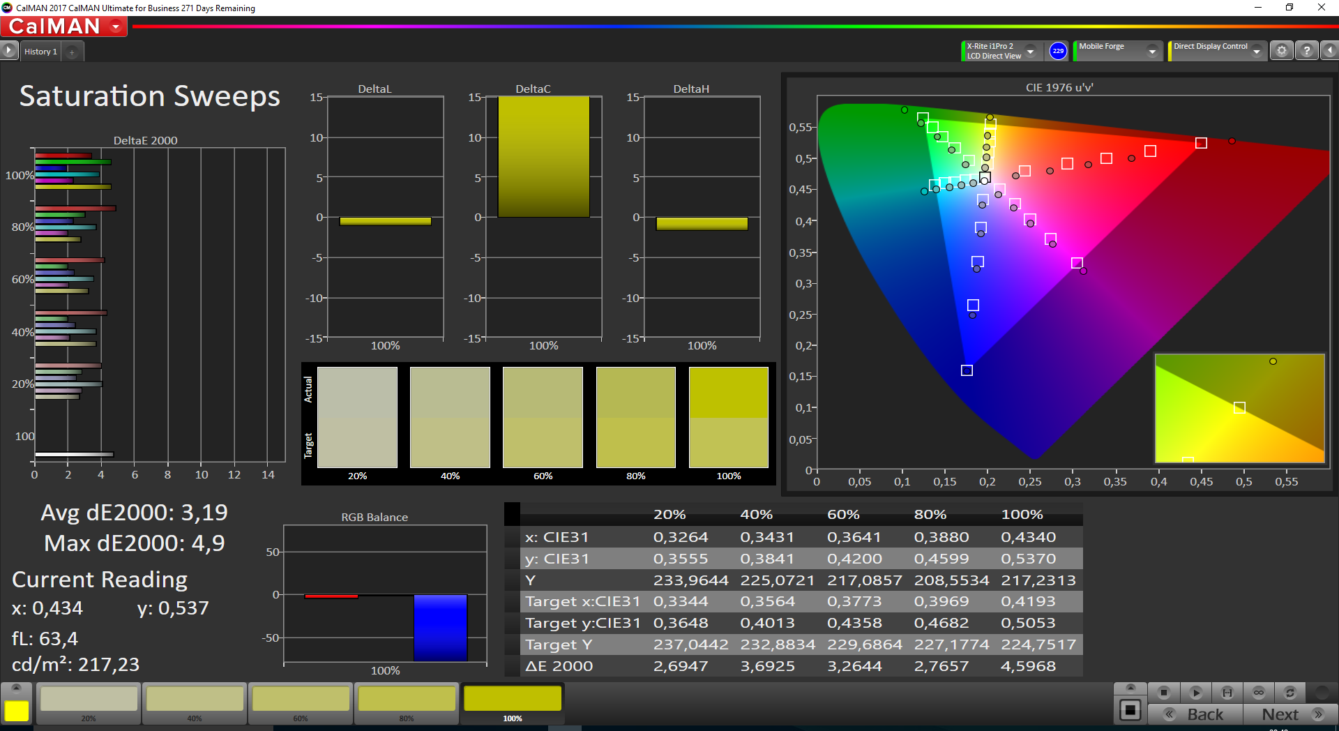 | Delta E Graustufen * | 4 | 4.2 -5% | 3.1 22% | 2.5 37% | 1.6 60% |