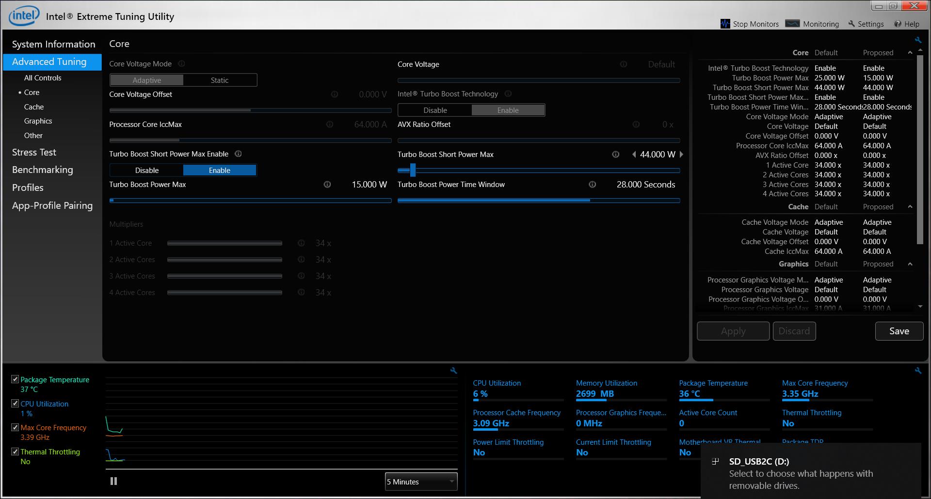 Wie unten ersichtlich hat unser chinesisches Importprodukt als Standard-Einstellung 15 Watt für den Turbo Boost Power Max und 44 Watt für Turbo Boost Short Power Max für die gewohnten 28 Sekunden gespeichert.