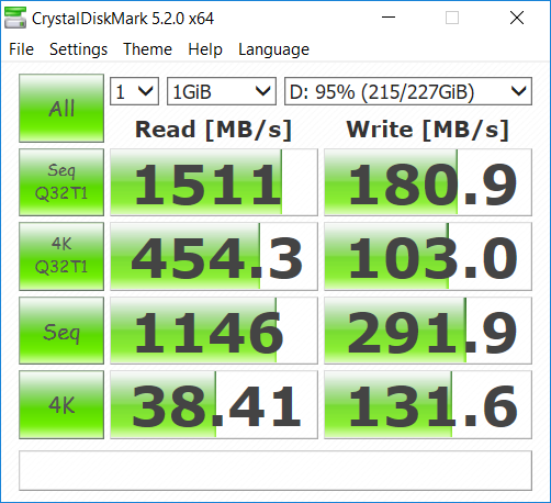 Im Inneren liegt der verschraubte Akku nun frei, auch Zugang zu den Lüftern als auch zu der eingesetzten SSD ist möglich. Etwas überraschend finden wir einen weiteren M.2 Slot, der nicht besetzt ist, sowie einen auf der Hauptplatine als "WLAN LTE 4G" ausgewiesenen Bereich, der allerdings nicht bestückt ist. Wir stecken zu Testzwecken eine Samsung PM951 NVMe SSD mit 256 GB in den freien M.2-Slot und starten das Device. Der zusätzliche Speicher wird sofort erkannt und funktioniert tadellos. Insofern kann das Xiaomi Mi Notebook Pro sehr günstig in Eigenregie mit großen Speicherkapazitäten versehen werden. Mehr zur Speicherperformance im Kapitel Leistung.