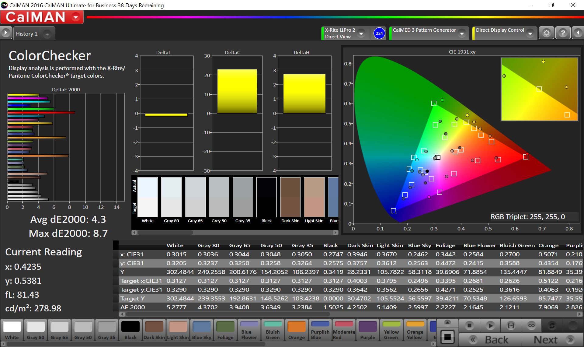 ΔE ColorChecker Calman: 4.3 | ∀{0.5-29.43 Ø4.78}