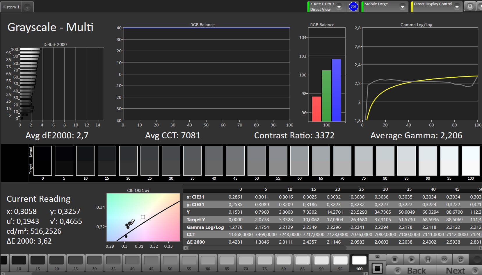 ΔE Greyscale Calman: 2.7 | ∀{0.09-98 Ø5}
