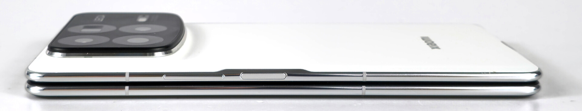 Für ein 7,98 Zoll großes Foldable-Smartphone ist das Gewicht des Mix Fold 4 mit nur 226 g sehr leicht. Hier bewegt sich das Xiaomi-Handy auf dem Niveau eines Honor Magic V3. Wirklich beeindruckend ist die Gehäusestärke im aufgeklappten Zustand von nur 4,7 Millimeter und selbst zusammengefaltet wirkt das Mix Fold 4 kaum dicker als ein klassisches Smartphones.
