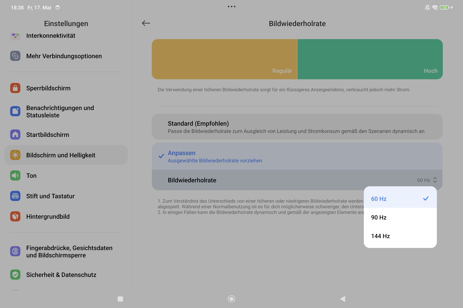 Das 12,4 Zoll große IPS-Panel des Pad 6S Pro arbeitet mit einer maximalen Touch-Sampling-Rate von 360 Hz und setzt Eingaben schnell und präzise um. Zusammen mit der Bildwiederholrate von bis zu 144 Hz macht das die Darstellung sehr geschmeidig. Biometrisch entsperrt wird das Tablet über den Fingerabdrucksensor, der in der Powertaste steckt. Alternativ steht dafür die 2D-Gesichtserkennung zur Verfügung. Sie funktioniert bei ausreichend Umgebungslicht oder hellem Display genauso zuverlässig wie der Fingerabdrucksensor.