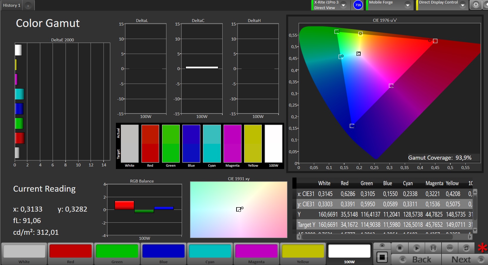 | Colorchecker dE 2000 max. * | 2.45 | 5.94 -142% | 8.96 -266% | 6.65 -171% | 9.3 -280% |