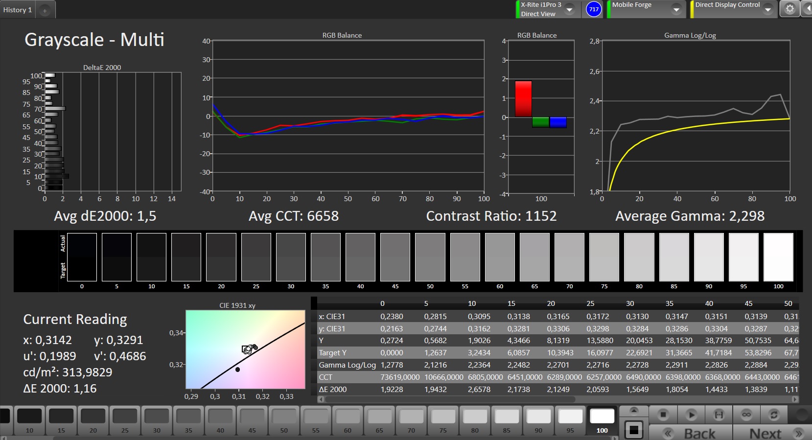 ΔE Greyscale Calman: 1.5 | ∀{0.09-98 Ø5}