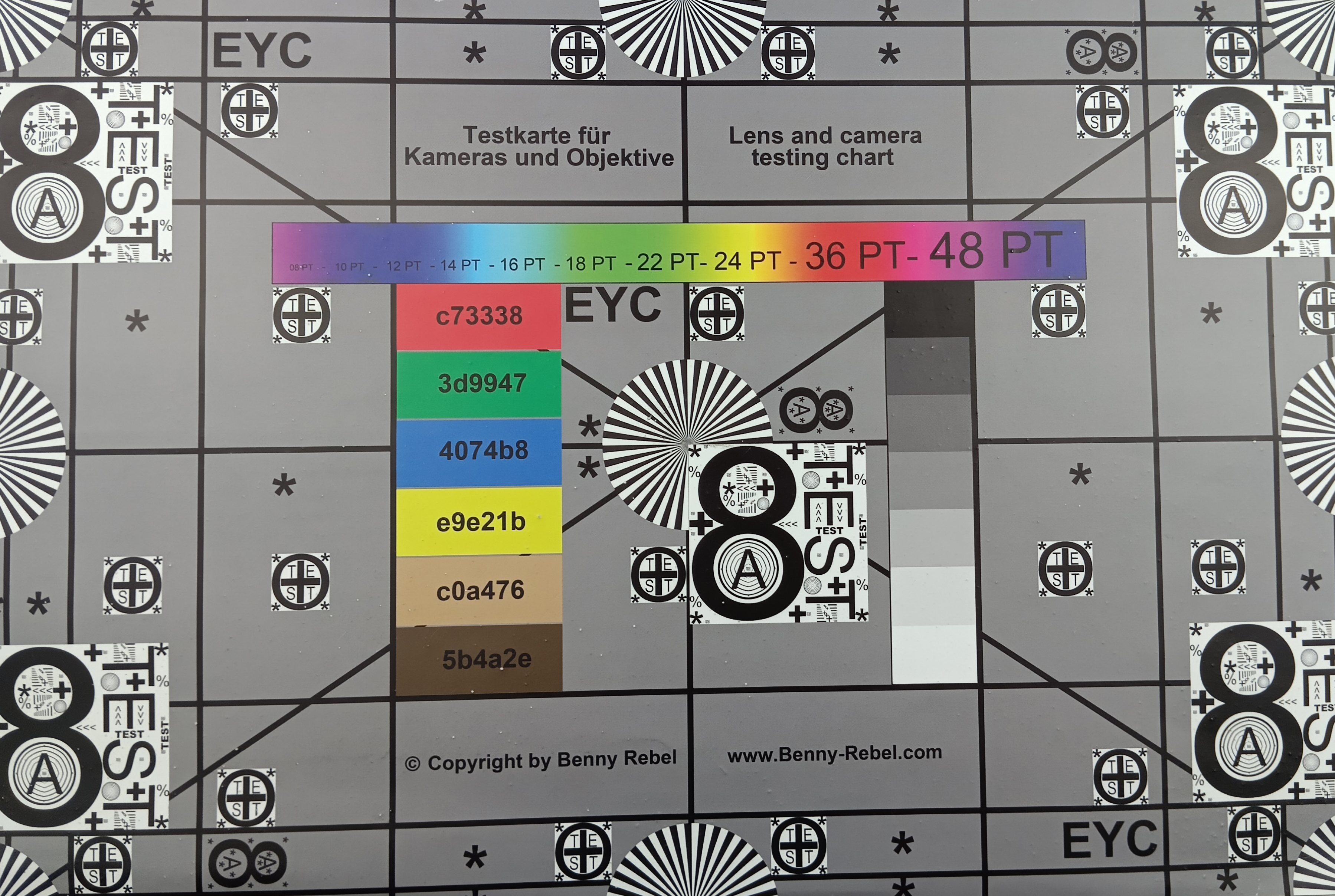 | Delta E Colorchecker * | 1.26 | 4.34 -244% | 4.53 -260% | 4.39 -248% | 5.82 -362% |