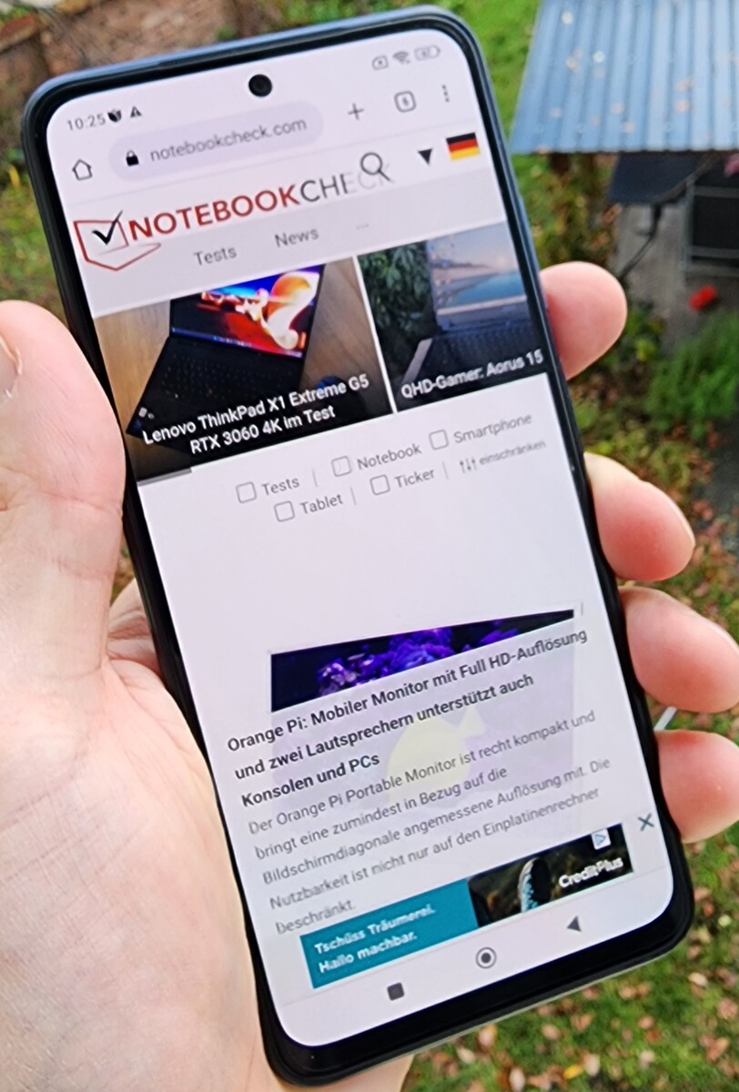 Im Freien präsentiert sich das Poco M5s trotz des geringen Preises ziemlich souverän und bietet in allen Lichtsituationen eine sehr gute Ablesbarkeit – zumindest im Testzeitraum unter winterlichen Bedingungen. Aber auch im Sommer sollten infolge der hohen Luminanz allenfalls Spiegelungen auf der Glasoberfläche bei der Nutzung des Xiaomi-Handys bei direkter Sonneneinstrahlung störend ausfallen. Auch die Blickwinkelstabilität liegt auf dem erwarteten Niveau eins AMOLED-Displays und gefällt uns daher gut.