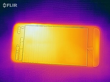 Das Gehäuse des Redmi-Handys erwärmt sich unter Last relativ inhomogen, die von uns gemessenen maximalen Temperaturen liegen aber noch in einem unbedenklichen Rahmen. Allerdings führt die Wärmeentwicklung im Inneren des Redmi 10 X zu einer leichten Reduzierung der Leistungsentfaltung des MediaTek-SoCs. Anhand des Manhattan-3.1-Tests der App GFXBench wird deutlich, dass mit zunehmender Last die Frame-Zahl um etwa 15 Prozent einbricht.