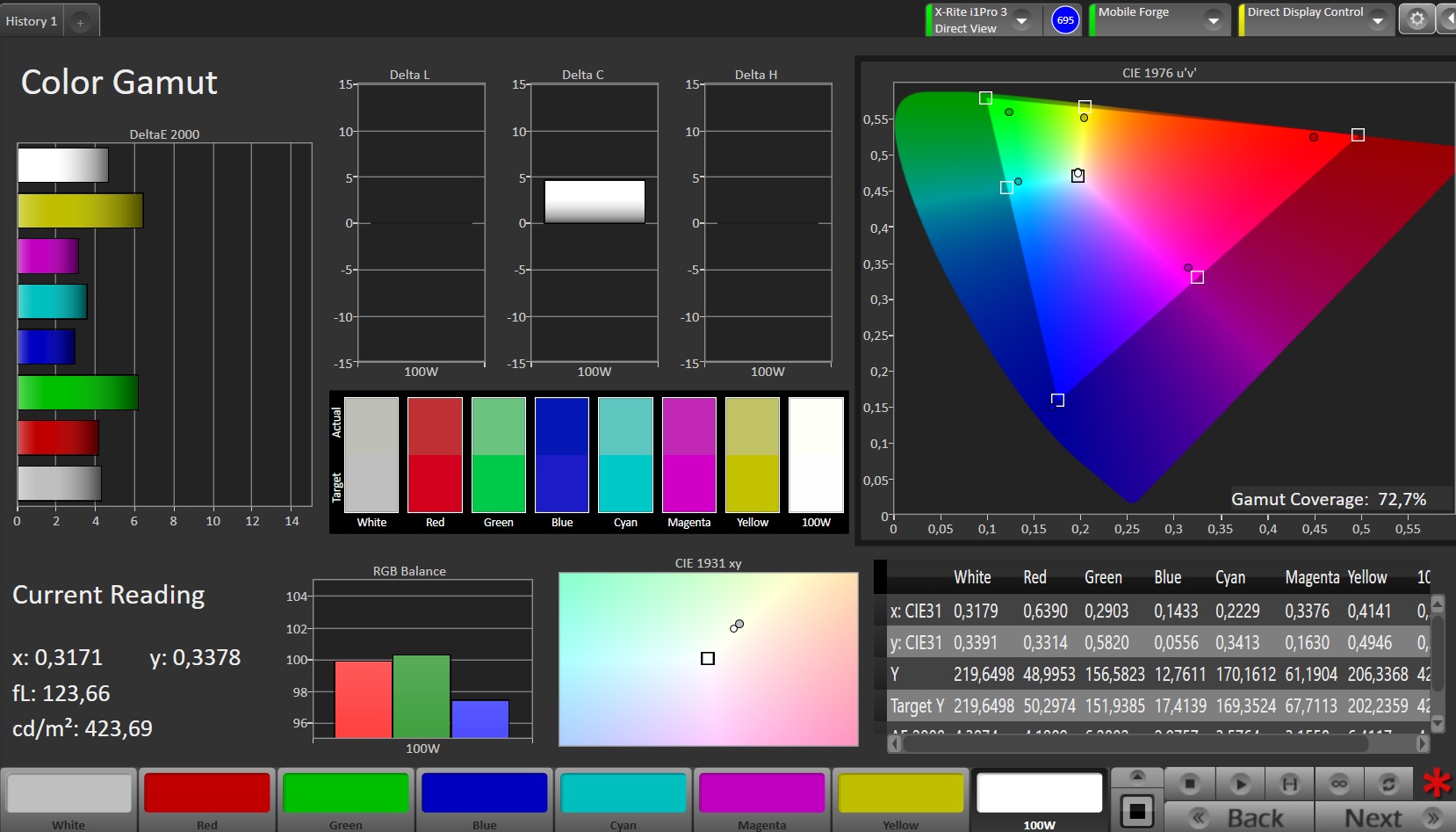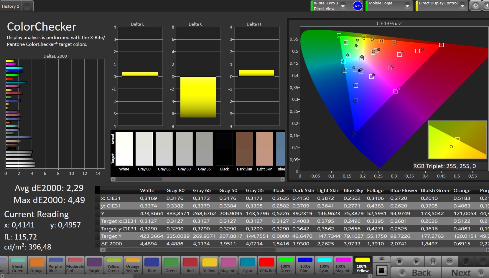 | Delta E Colorchecker * | 2.29 | 1.4 39% | 8.5 -271% | 4.45 -94% | 4.63 -102% |