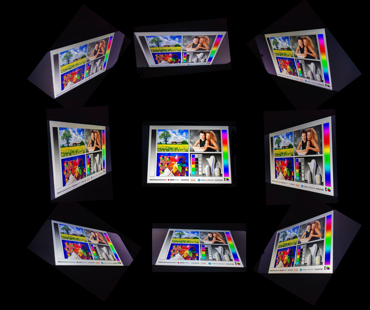 | Helligkeit Bildmitte (cd/m²) | 449 | 658 47% | 465 4% | 674 50% | 522 16% |