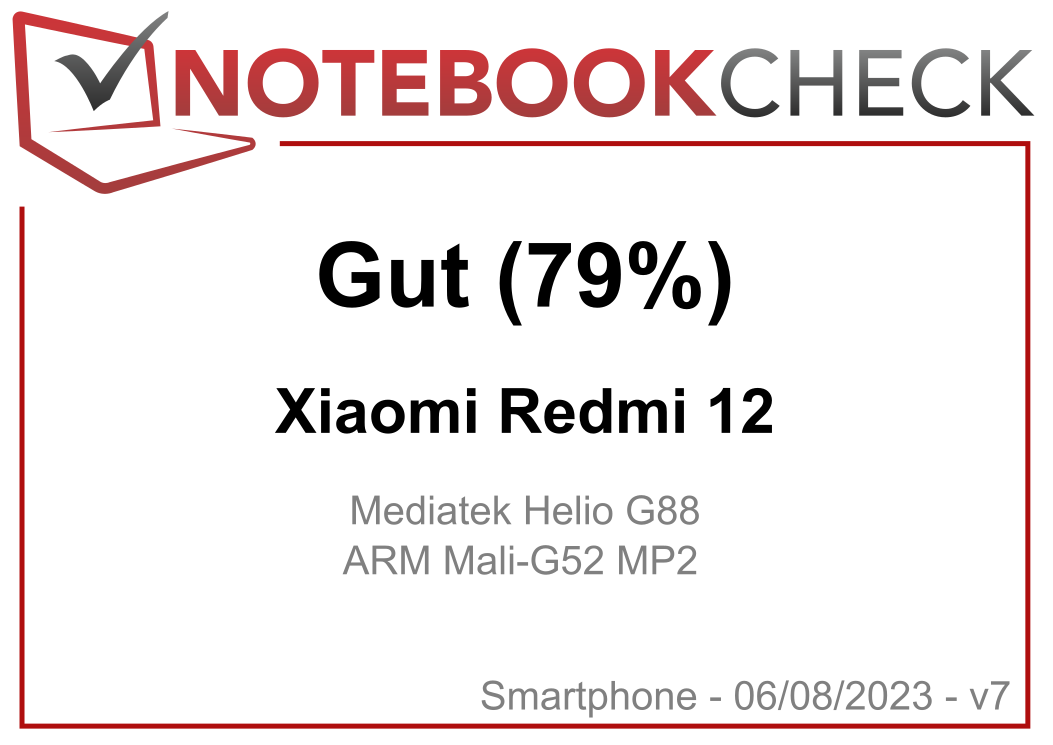 | 79 % v7 (old) | 08 / 2023 | Xiaomi Redmi 12 Helio G88, Mali-G52 MP2 | 198.5 g | 128 GB eMMC Flash | 6.79" | 2460x1080 | |