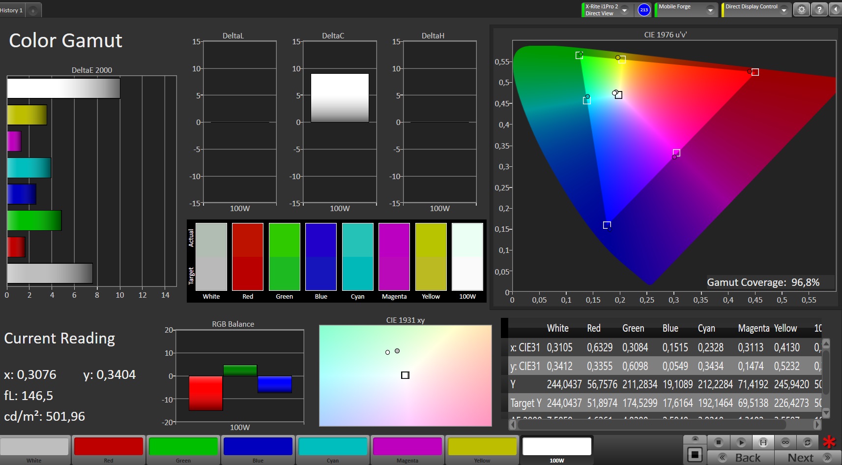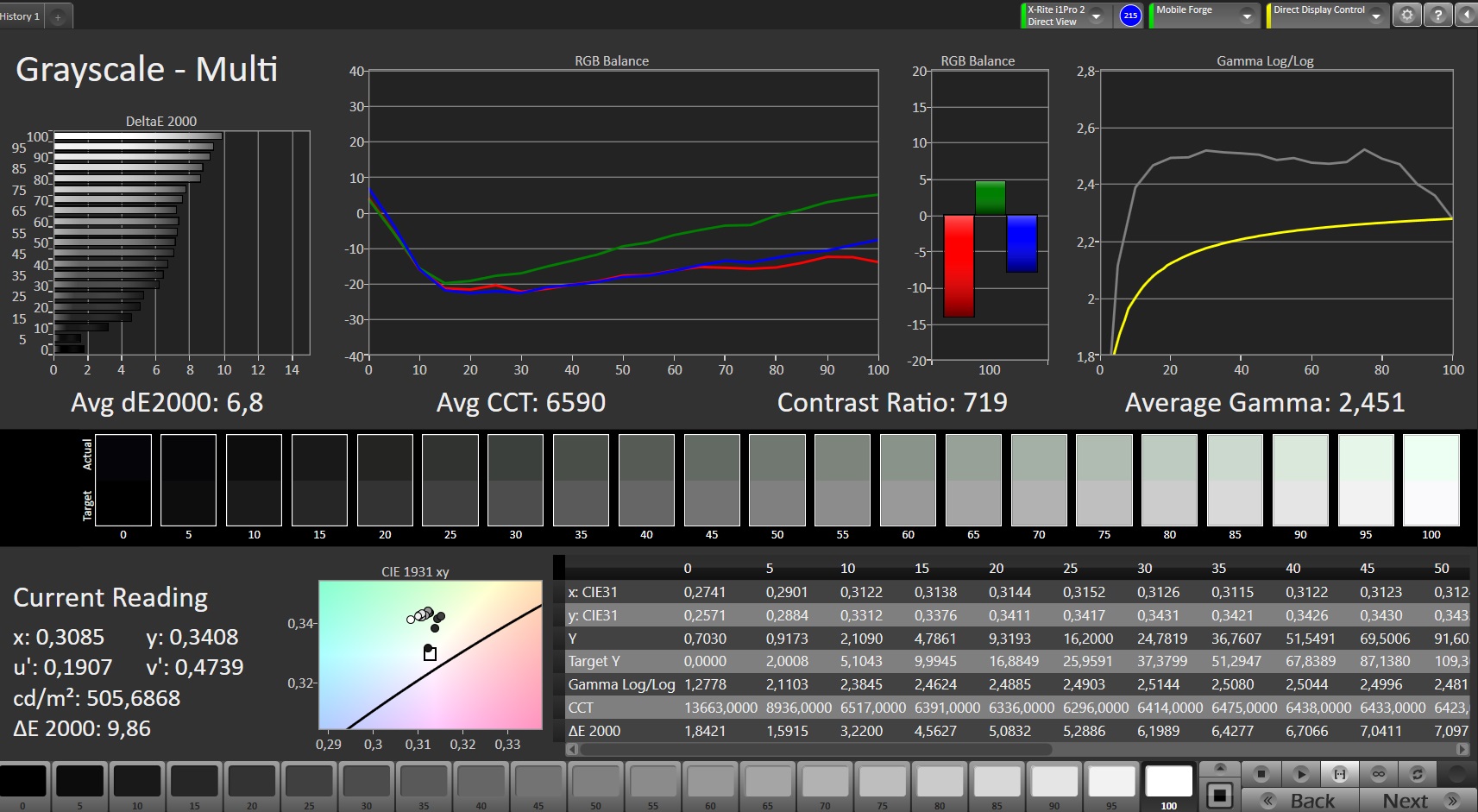 ΔE Greyscale Calman: 6.8 | ∀{0.09-98 Ø5}