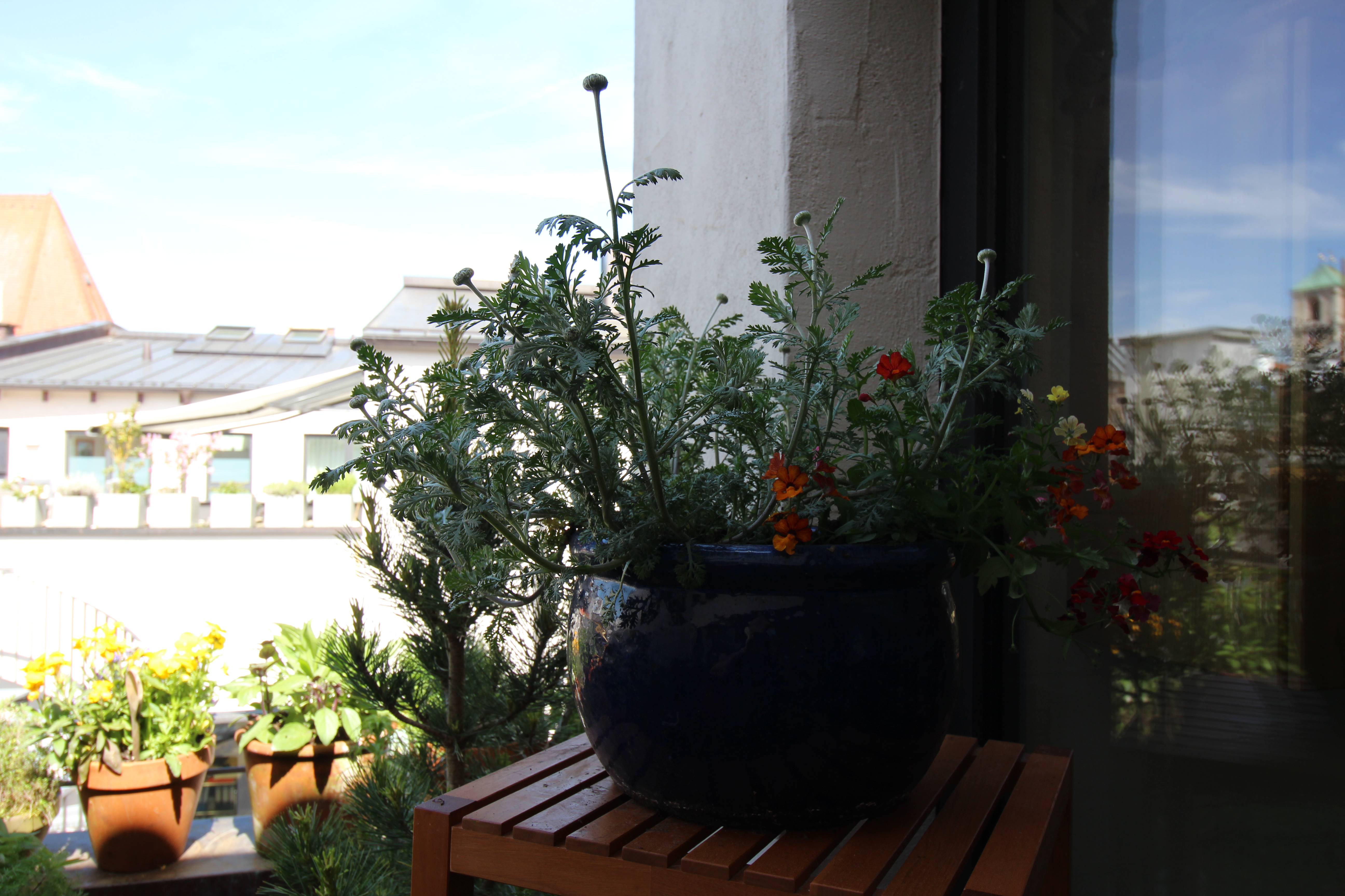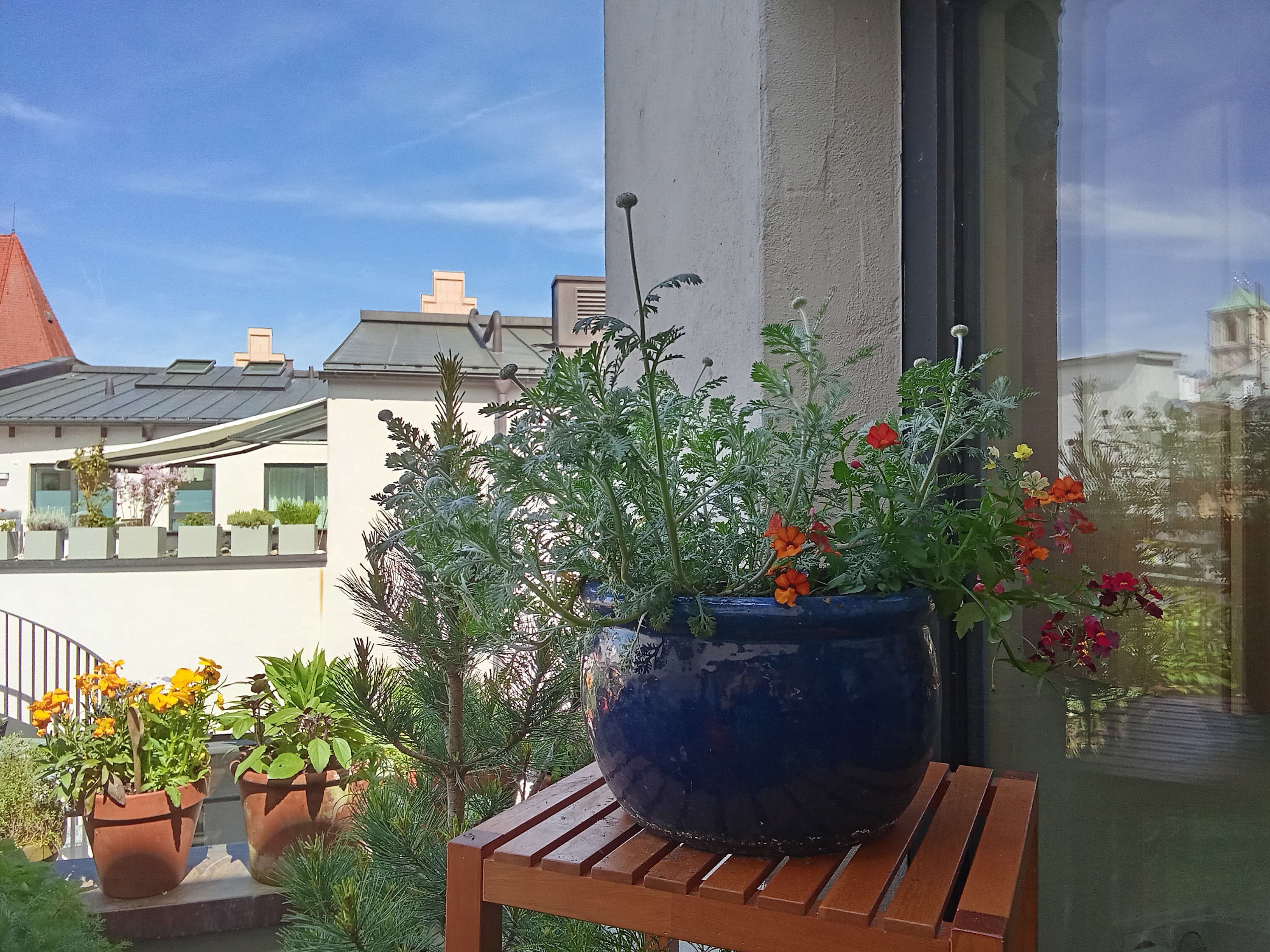 Ganz gut meistert die Hauptkamera die HDR-Situation beim Pflanzenbild mit hellem Hintergrund und wenig Licht auf dem eigentlichen Motiv. Hier werden beide Ebenen gut belichtet, allerdings sind bereits fehlende Details bei den Blüten sichtbar. Beim Umgebungsbild gehen viele Einzelheiten in helleren Bildbereichen verloren, und auch die allgemeine Schärfe des Bildes ist zu bemängeln. Als Schnappschuss ist es aber brauchbar.